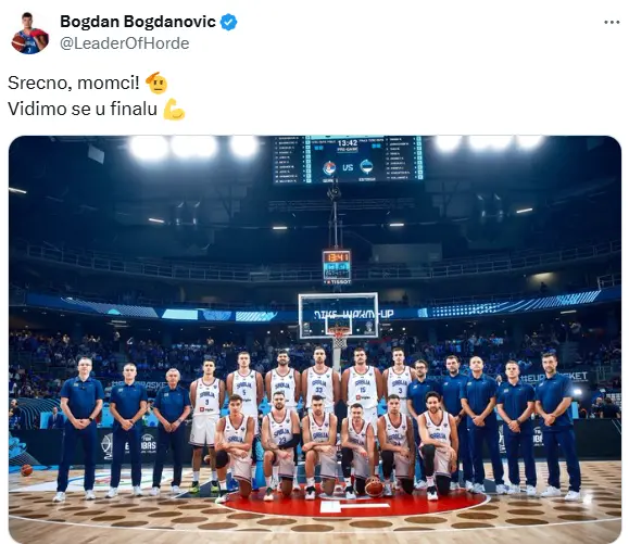 博格丹晒国家队大合影并且寄语队友们,配文写道:兄弟们,祝你们好运,决赛见。