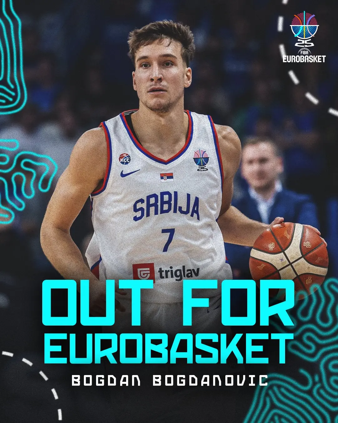 在小组赛塞尔维亚对阵葡萄牙的比赛中,博格丹在上半场的一次进攻中意外受伤,捂着腿筋十分痛苦,之后因伤离开球场并且一直留在更衣室中,仅仅只打了上半场,因伤提前退出比赛;受伤前,博格丹出战14分钟,4投3中拿到7分5篮板1助攻1抢断。